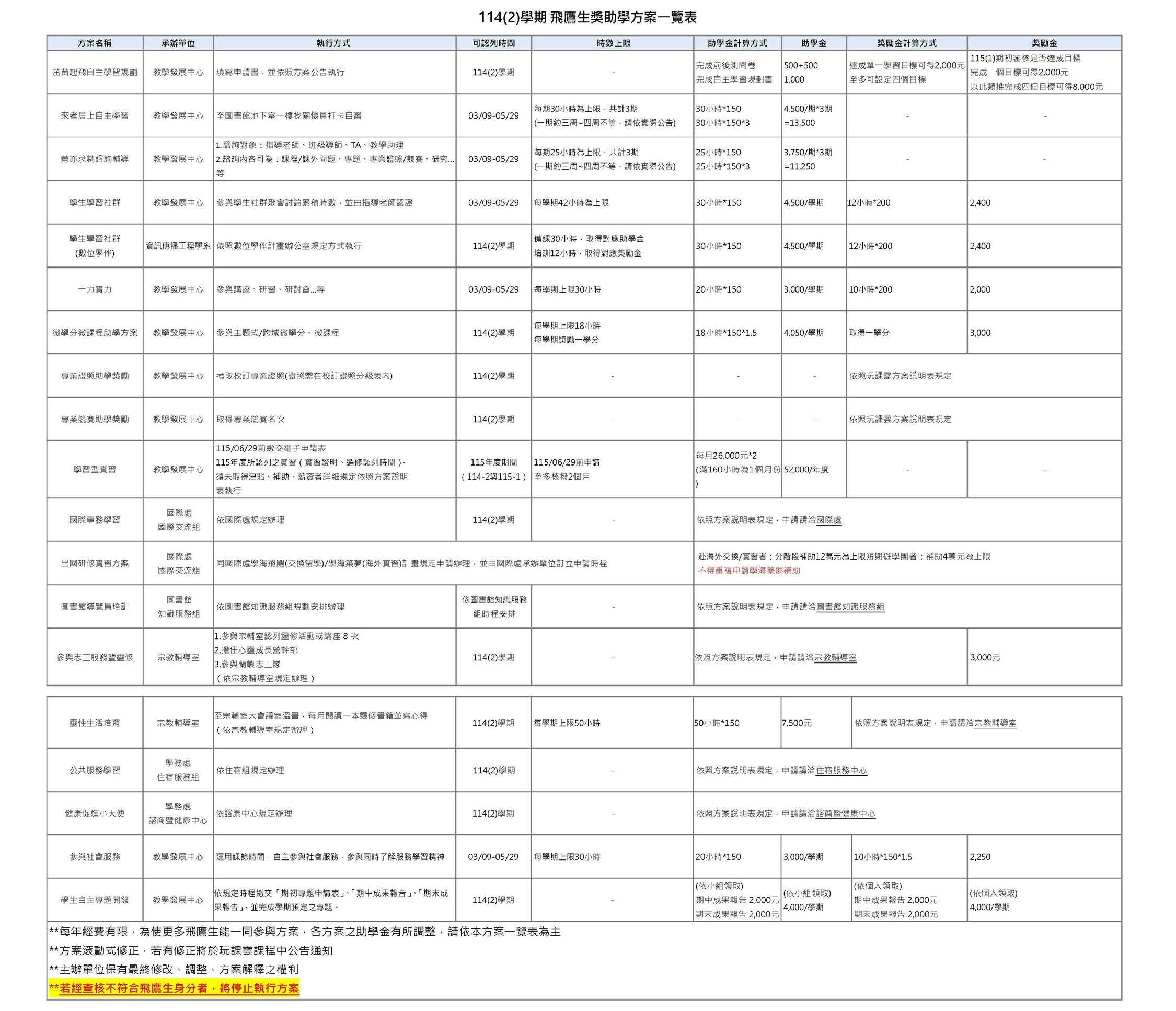 <飛鷹生資訊>114(2)飛鷹生獎助學方案各方案詳細執行說明 #重要資訊